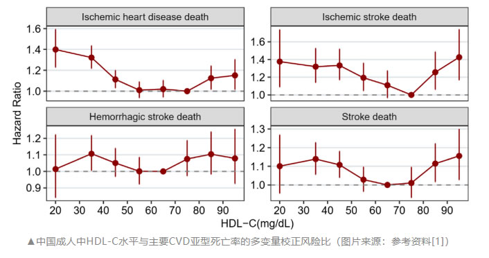 結(jié)果顯示,低HDL-C和高HDL-C均與死亡風(fēng)險增加相關(guān)。該研究推薦50 mg/dL~79 mg/dL作為中國成人HDL-C的最佳范圍。正確管理低HDL-C和高HDL-C,可給血脂異?;颊邘慝@益。論文指出:“該研究是第一個在近340萬中國成人中全面評估HDL-C與全因死亡率和病因特異性死亡率之間關(guān)系的研究”。