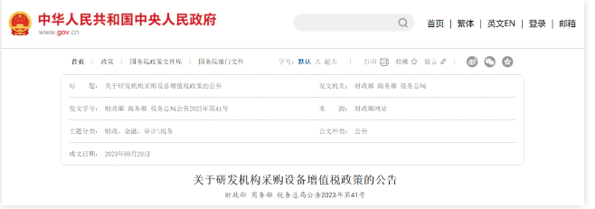 財政部 商務(wù)部 稅務(wù)總局關(guān)于研發(fā)機(jī)構(gòu)采購設(shè)備增值稅政策的公告