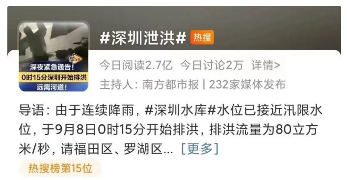 5日-9日,臺(tái)風(fēng)“???/span>先后兩次登陸福建、廣東。受其影響,南方多地出現(xiàn)特大暴雨,福建省、廣東省氣象臺(tái)多次發(fā)布“暴雨預(yù)警一級(jí)”。福州、廈門(mén)、漳州、深圳、廣州、佛山等城市內(nèi)澇嚴(yán)重,部分城市雨水齊腰,短時(shí)間強(qiáng)降雨超過(guò)100毫米,深圳降雨量更是打破1953年以來(lái)的降雨極值,地鐵灌水,深圳泄洪多次登上各大平臺(tái)的熱搜第一。